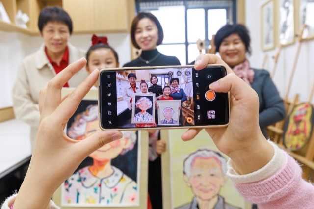 孩子们正在画心目中可爱的爷爷和慈祥的奶奶。通讯员 孙振嵩 摄