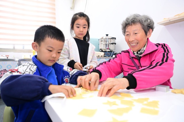 小朋友与老人一起烘焙饼干。通讯员 计海新 摄