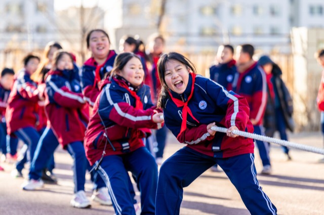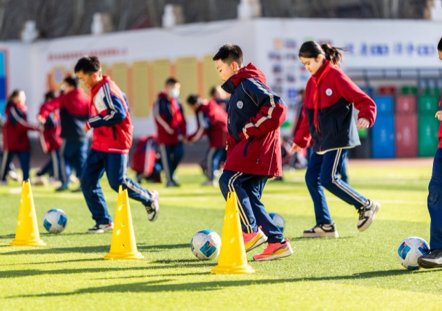近年来,内蒙古自治区呼和浩特市玉泉区石东路小学积极推动校园体育活动“加时”“加量”,通过丰富体育课程、成立体育兴趣小组和社团等举措,让学生在快乐运动中锻炼身体、增强体质。中国教育报-中国教育新闻网通讯员 丁根厚 摄