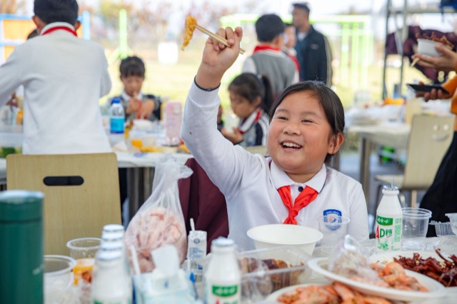 学生在开心地品尝自己亲手烧制的菜肴。通讯员 刘吉利 摄