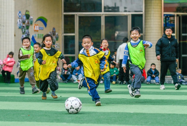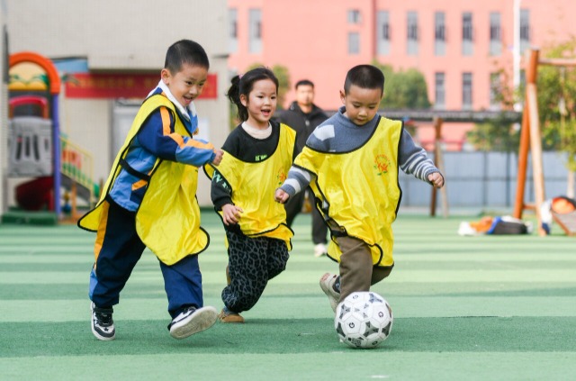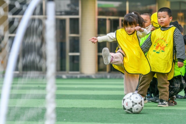 2025年12月9日,当地小学、幼儿园组织校园足球活动,让学生们接触足球、认识足球,在运动中感受足球带来的快乐。(中国教育报-中国教育新闻网 通讯员 蒋克青 摄)