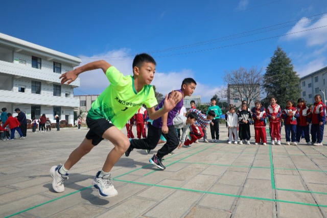 2025年12月10日,云南省曲靖市陆良县大莫古镇大莫古小学举办冬季运动会。运动会设置跑步、跳绳、跳远、实心球等多个比赛项目,让学生们在欢乐竞技中强健体魄、锤炼意志,充分展现新时代少年朝气蓬勃的精神风貌。(中国教育报-中国教育新闻网 通讯员 王石兵 王勇 摄)