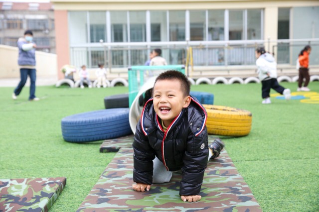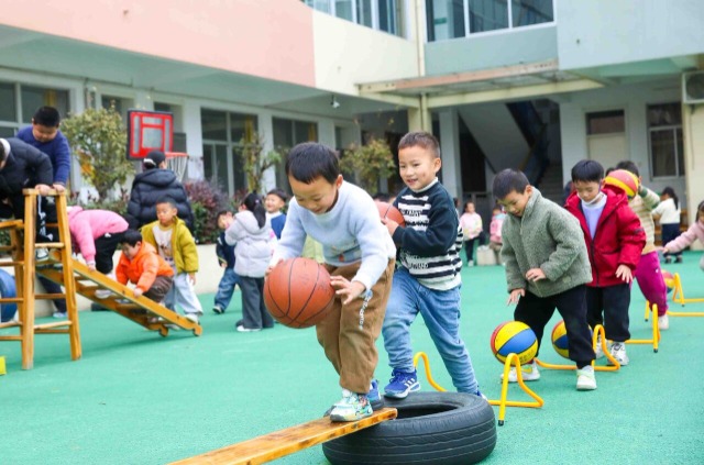 2025年12月10日,江苏省如皋市吴窑镇吴窑幼儿园操场上,孩子们快乐地参加户外趣味游戏。如皋市教育部门鼓励幼儿园老师带领幼儿参加以游戏为主的户外活动和适宜的体育运动,确保幼儿每天户外活动时间不少于2小时,通过趣味游戏和体育运动,增强幼儿体质。(中国教育报-中国教育新闻网 通讯员 徐慧 摄)