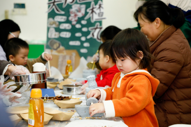 12月21日,江苏省海安市星禾托育中心举办中医主题游园会。家长与小朋友一同学习中医文化,体验手工制药丸、制作中药泡澡包。活动旨在让孩子们在趣味实践中学习传统文化,欢度冬至佳节。中国教育报-中国教育新闻网通讯员 顾彬斌 摄