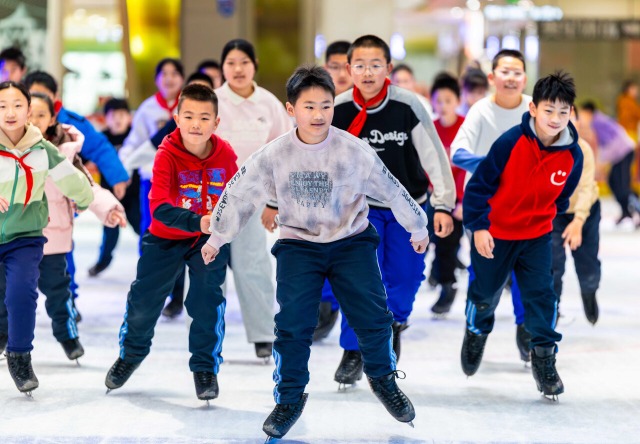 今年入冬以来,内蒙古自治区呼和浩特市玉泉区小召小学将三至六年级的体育课搬进滑冰场,让孩子们在冰上学技能、练意志、享乐趣,感受冰雪魅力,推动校园冰雪运动普及。中国教育报-中国教育新闻网通讯员 丁根厚 摄