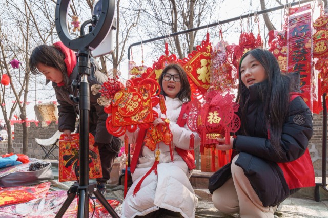 春节临近,山东省淄博市周村区韩家窝村“年货大集”热闹开集。山东轻工职业学院商务贸易系“数商兴农”直播团队的学生们走进市集,通过网络直播推介王村醋、非遗糖画等当地特色年货,以专业技能助力农户增收。据悉,该团队连续四年开展电商助农实践,累计进行公益直播近300场,帮助区域农户增收超百万元,为乡村振兴注入青春动能。中国教育报-中国教育新闻网通讯员 翟慎安 傅子源 摄