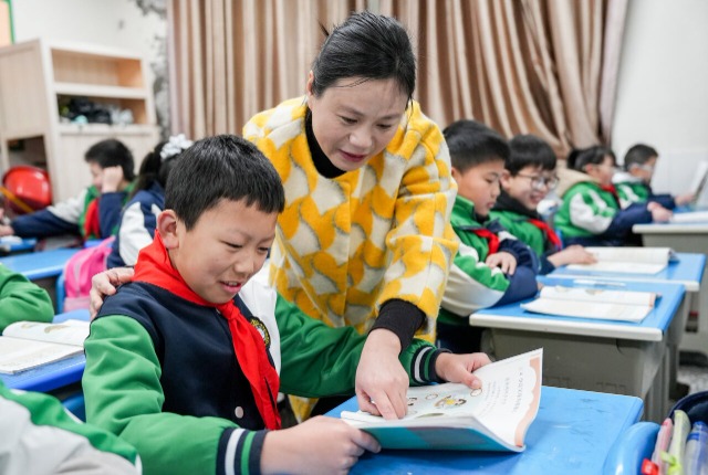 思政课老师在辅导学生学习。通讯员 邱海鹰 刘南贤 摄