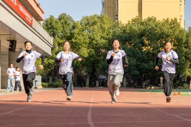 学生正在进行跑步体能训练。通讯员 赵明 摄