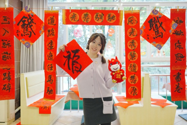 新春将至,重庆高校积极开展“暖冬”行动,让留校学生感受浓浓的新春年味。2026年2月8日,位于重庆市北碚区的西南大学举行“温暖在西大 新春嘉年华”留校学生新春团拜会,现场准备了写春联福字、猜灯谜、投壶等趣味游戏,约200名留校学生代表欢聚一堂吃团年饭、领压岁包、同叙情谊、共迎新春,感受年味和家的温暖。(中国教育报-中国教育新闻网 通讯员 秦廷富 摄)