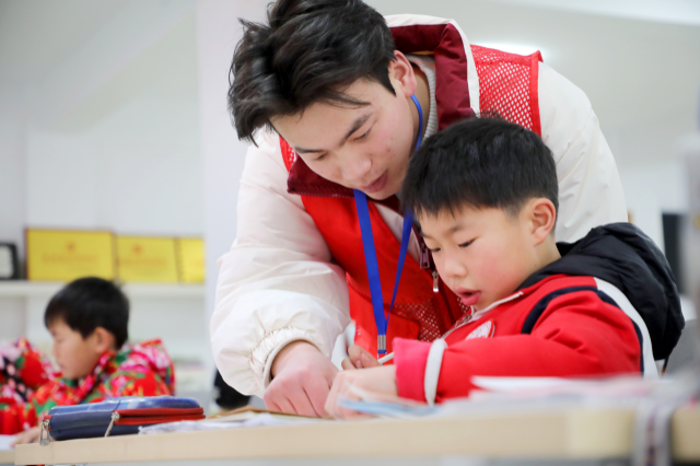 寒假期间,安徽省六安市金安区望城街道正阳社区以“‘托’起冬日暖阳 共‘管’缤纷寒假”为主题,携手合肥师范学院返乡大学生志愿者开展“向日葵行知学堂”寒假公益托管班,免费为辖区居民及新就业形态劳动者子女提供作业辅导、音乐绘画、书法阅读、手工制作、参与敬老公益活动等志愿服务,让青少年儿童在托管中锻炼能力、拓展视野、增长知识,既解决了辖区新就业群体子女假期“看护难”的问题,又让孩子们在轻松愉快的氛围中度过一个丰富多彩的寒假。(中国教育报-中国教育新闻网 通讯员 田凯平 摄)