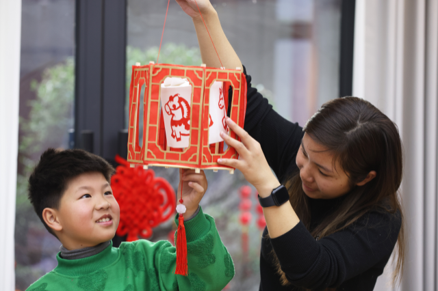 2月11日是南方小年,在浙江省湖州市德清县乾元镇,家长和孩子参加制灯笼、捏面塑等活动,丰富寒假生活,在欢声笑语中迎接新春佳节。(中国教育报-中国教育新闻网 通讯员 倪立芳 章成强 摄)