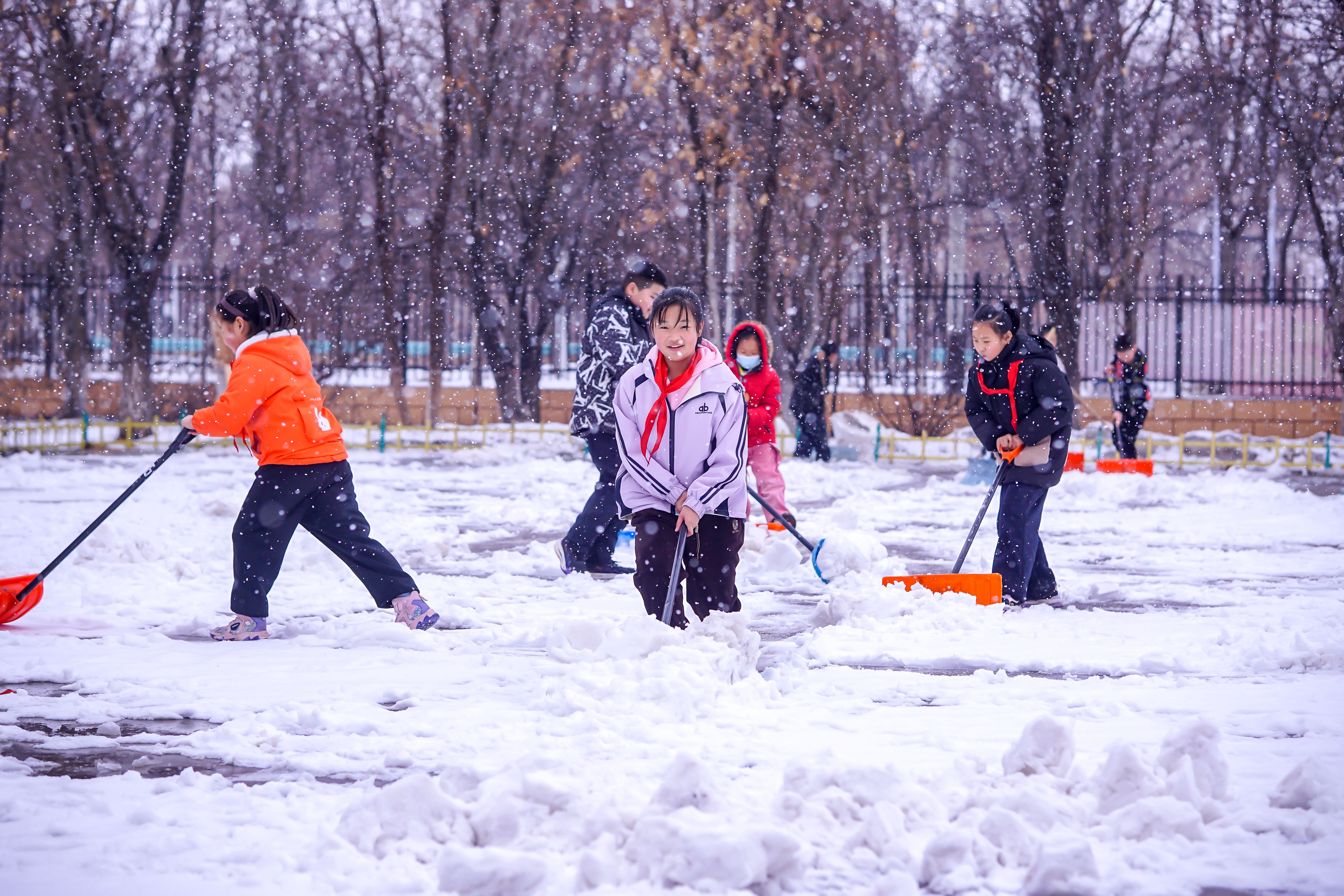 一场春雪悄然降临,为新疆昌吉市滨湖镇中心学校披上了银装。课间铃声响起,孩子们迫不及待地冲出教室,奔向雪地。中国教育报-中国教育新闻网通讯员 杨斌 摄