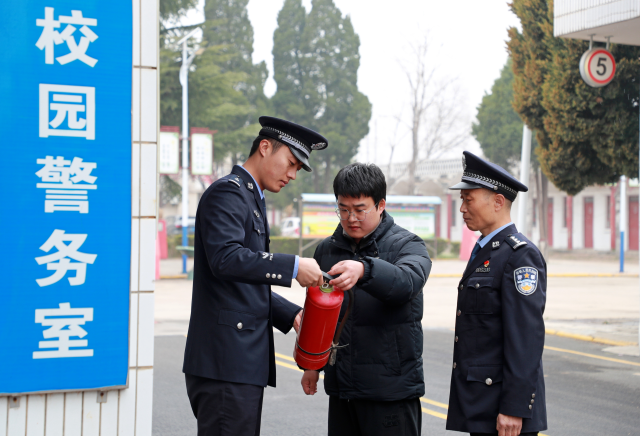 民警查看校园灭火器。通讯员 崔正博 摄