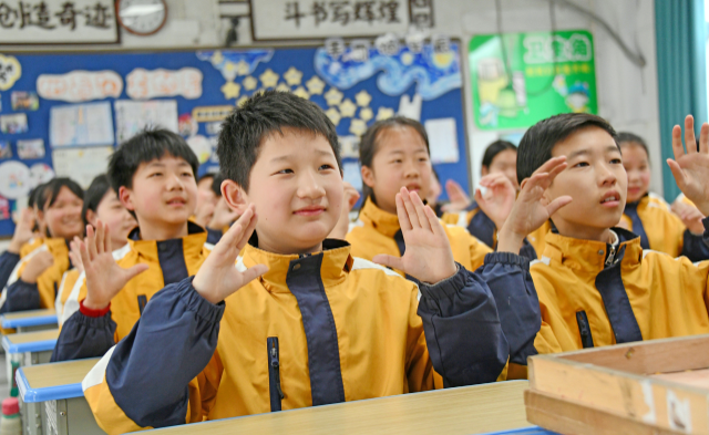 近年来,横溪镇中心小学根据学生年龄特征分年段组织编排形式多样、风格独特的课桌操,既保障学生在特殊天气能正常锻炼,又缓解了学习压力,促进学生身心健康成长。中国教育报-中国教育新闻网通讯员 王华斌 摄