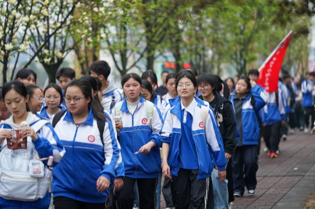 3月13日,四川省眉山市彭山区第二中学组织九年级师生开展“长征薪火九十载 行远积厚铸青春”主题的30公里远足实践活动。师生沿既定路线步行至眉山市彭山区公义镇红色教育基地,活动各工作组及交警、医护等全程保障安全,此次行动不仅锤炼了学生意志、传承了长征精神,也进一步展现了该校学子积极向上的精神风貌。中国教育报-中国教育新闻网通讯员 翁光建 摄