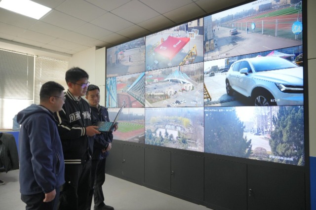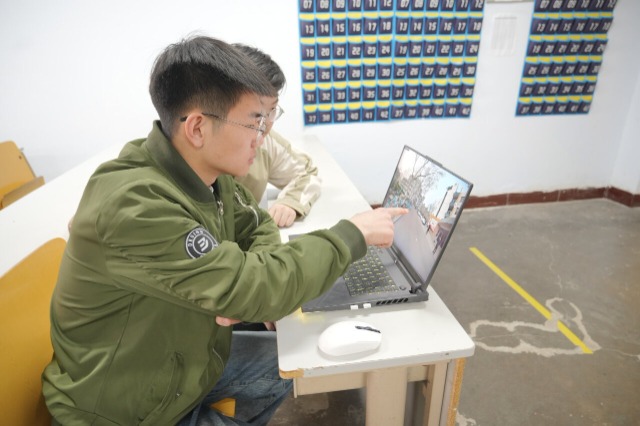 学生正在观察巡逻车实时拍摄的道路画面。通讯员 许文豪 摄