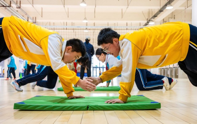 3月25日,中央民族大学附属中学呼和浩特分校体适能社团的学生在锻炼身体。丁根厚 摄