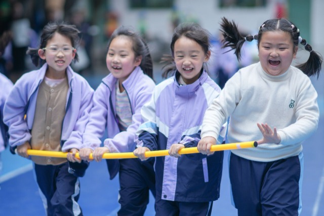 2026年3月23日,四川省遂宁市船山区裕丰街小学学生在协作奔跑中舒展筋骨、锻炼体能,既丰富了课余生活,也展现出少年们蓬勃向上的朝气与团结协作的活力。(中国教育报-中国教育新闻网 通讯员 刘昌松 摄)