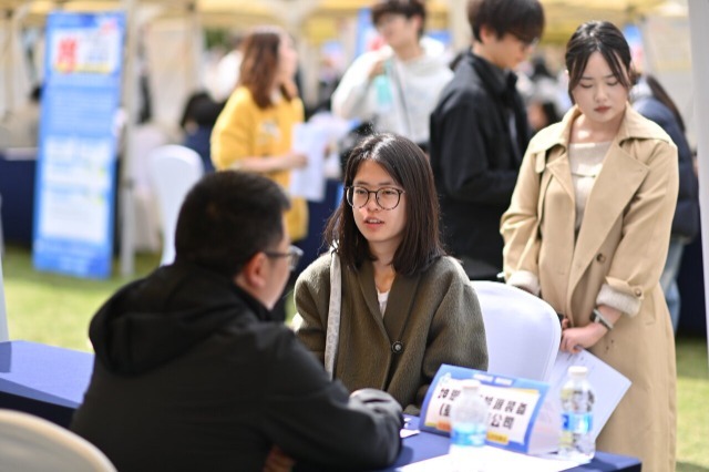 2026年3月24日,“春天的第一个OFFER”,出海去!AI+跨境电商重庆专场招聘活动举行。100余家重庆本地优秀跨境电商外贸企业参与,提供‌1000余个优质岗位‌,涵盖AI外贸业务员、跨境电商AI运营、国际站运营等领域的专业岗位,主要面向高校毕业生及青年人才。来自四川外国语大学、重庆师范大学、重庆商务职业学院等11所高校的应届大学生前来应聘。(中国教育报-中国教育新闻网 通讯员 孙凯芳 摄)