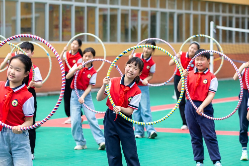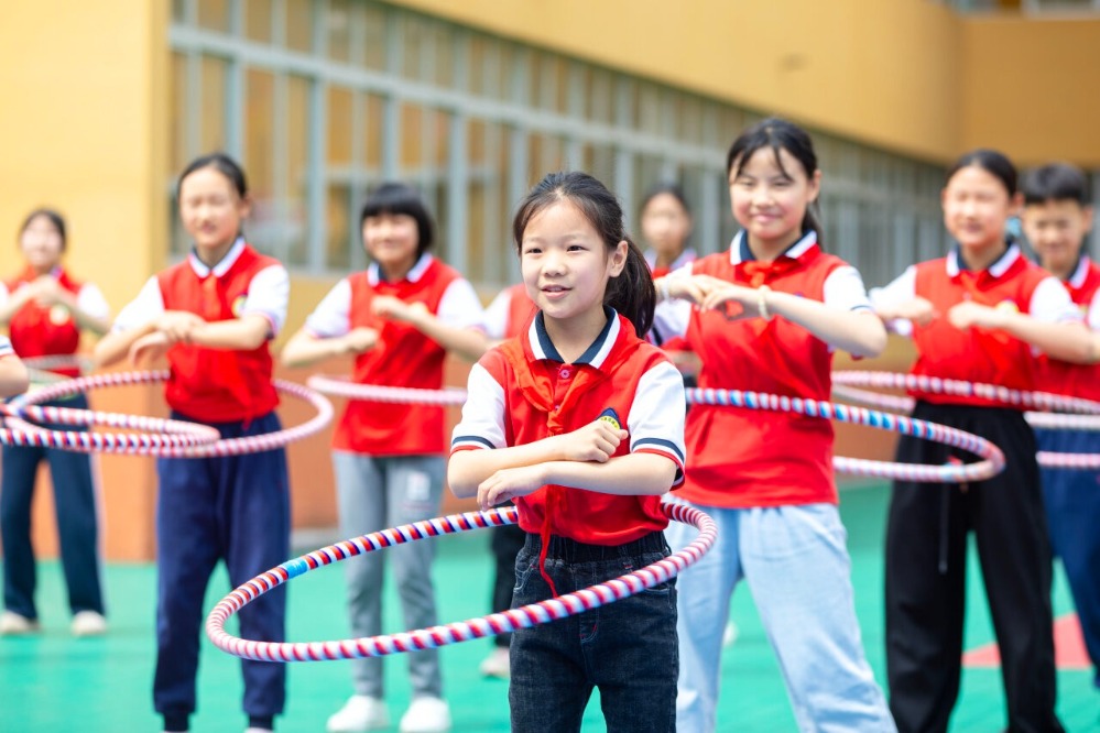 学生欢快转动呼啦圈。通讯员 李旭晖 摄
