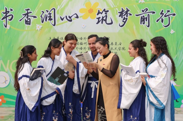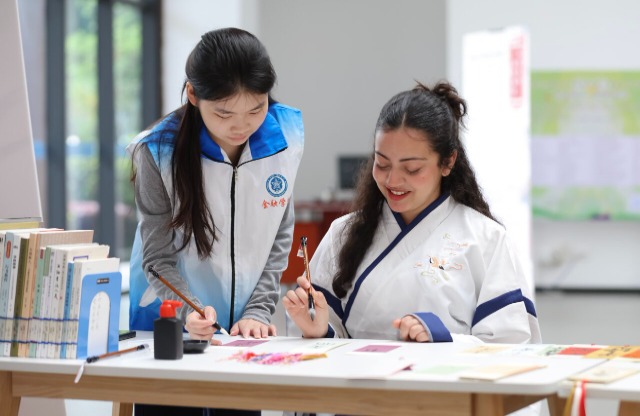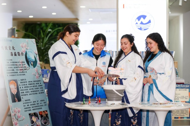 2026年4月22日,第31个世界读书日来临之际,位于福建省福州市长乐区的福州外语外贸学院,一场以“书香润心 筑梦前行”为主题的的中国传统文化体验活动正在举行,诗词接龙、漆扇创作、毛笔书法等项目精彩上演,书香与非遗雅韵相得益彰,吸引在校师生和外国留学生积极参与,沉浸式感受中华优秀传统文化独特魅力,共同迎接即将到来的世界读书日。(中国教育报-中国教育新闻网 通讯员 谢贵明 摄)