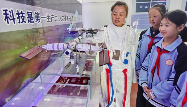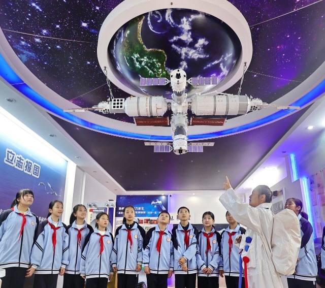 4月23日,河北省秦皇岛市海港区桥东里小学开展“感受科技魅力 探索航天奥秘”活动。据了解,此次活动由学校教师带领学生走进秦皇岛星箭特种玻璃有限公司展厅,由该公司专业工作人员为学生讲解特种玻璃的特性、在航天领域的应用等方面科普知识,让学生在参观学习的过程中了解逐梦太空的背后有特种玻璃团队用科技力量守护大国重器,为中国航天器披上“护身铠甲”,旨在引导学生关注科技前沿、学习航天知识,近距离感受科技魅力,以生动实践迎接“中国航天日”的到来。(中国教育报-中国教育新闻网 通讯员 曹建雄 摄)