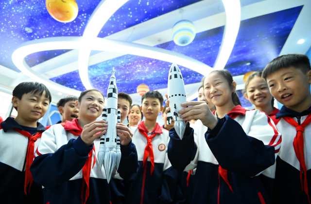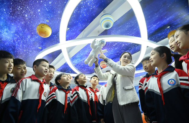 学生在校园科技馆学习了解航天知识 郝群英 摄
