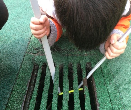 图片说明:小朋友们发现操场上的下水道里有一支水彩笔