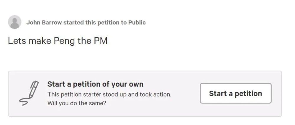推特上有网友发起了一个话题“PengForPM”,说让我当首相,这是英国人开的玩笑。我觉得,可能是因为网友对英国政府之前比较保守的防疫措施有意见,希望政府采取更有力的措施。