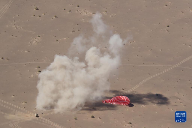 9月17日,神舟十二号载人飞船返回舱在东风着陆场成功着陆。新华社记者琚振华摄