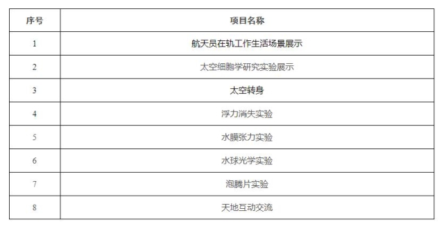 授课活动将采取天地互动方式进行,在中国科技馆设置地面主课堂,在广西南宁、四川汶川、香港、澳门设置地面分课堂。届时3名航天员将在轨介绍展示中国空间站工作生活场景,演示微重力环境下细胞学实验、物体运动、液体表面张力等现象(授课项目附后),并与地面课堂进行实时交流,传播载人航天知识,激发广大青少年对科学的兴趣。