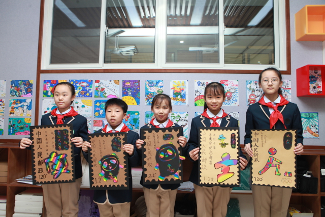 礼轩小学学生制作迎冬奥邮票 济南市历城区教体局 供图
