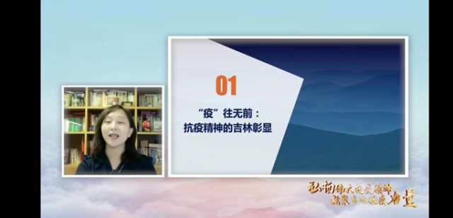 此轮新冠肺炎疫情,对吉林省高校是一场特殊严峻的考验,也是一本鲜活生动的思政课教材。为了让大学生从伟大抗疫精神中汲取精神滋养、凝聚奋进力量,省委教育工委联合教育部全国高校思政课“手拉手”集体备课中心(吉林大学)、吉林日报社全媒体中心上了一堂特殊的思政大课。全国高校优秀思想政治理论课示范课百人巡讲团成员、吉林大学马克思主义学院副院长石瑛,在网络直播中讲述战“疫”中发生的感人事迹,帮助学生凝聚抗疫力量,寄语广大青年学子更自信、更坚定、更担当的迈向未来,在实现中国梦中放飞激昂的青春梦想。