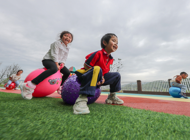 5月31日,四川省内江市东兴区阳光幼儿园的小朋友们在快乐嬉戏,欢庆“六一”儿童节的到来。兰自涛 摄