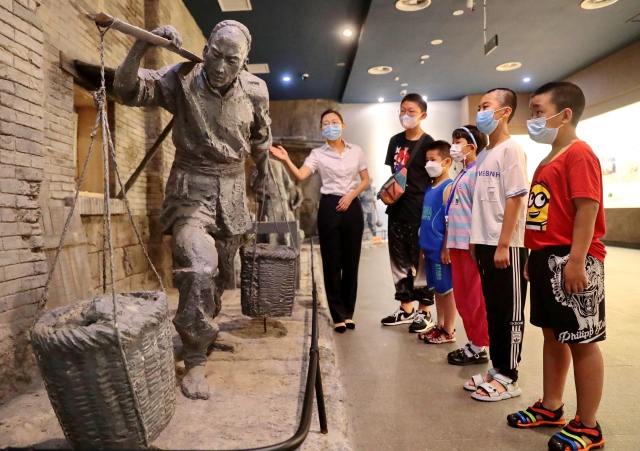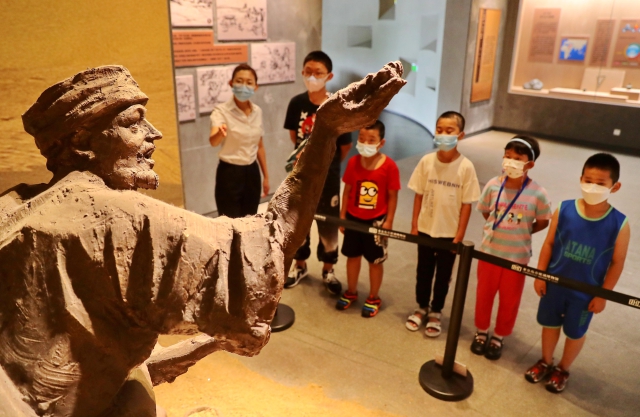 7月13日,河北省秦皇岛市海港区河东街道工人北里社区组织小朋友走进玻璃博物馆参观,通过讲解员为居民讲解玻璃的起源、发展等内容,带领小朋友零距离感受玻璃文化,度过愉快暑假。曹建雄 摄