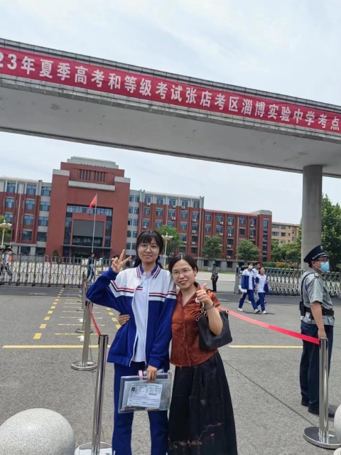 “到了考点北门,就被我的学生们给包围了,都要求抱一抱。本来女儿进考场之前,我打算给她爸爸打个电话,和孩子沟通一下,结果也没顾得上打,孩子就进场了……”