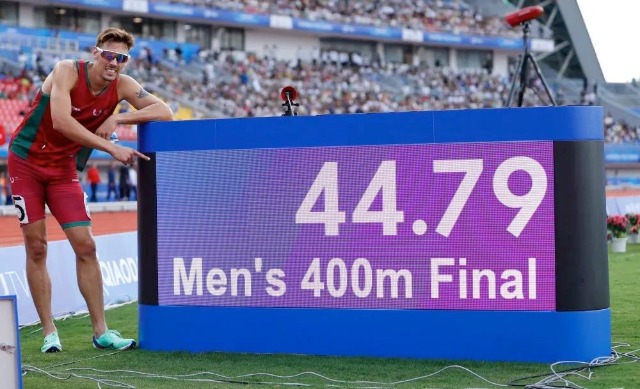 当天田径项目男子400米决赛上演“神仙打架”,最终葡萄牙选手科埃略以44秒79的成绩获得金牌,并打破赛会纪录。