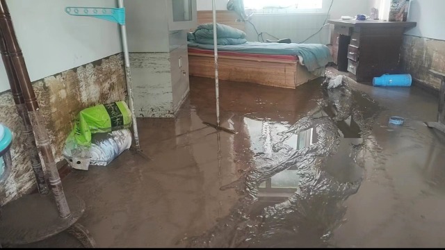 洪水退去后,其中口小学开展灾后自救。为了赶进度,很多时候老师们加班到深夜,有时忙得连饭都顾不上吃。在清理学生宿舍的过程中,由于宿舍门槛高于地面,导致清理产生的污水扫不出去,老师们只能用铁锹和簸箕一下一下地铲出去。烈日下,汗水浸湿了衣襟,泥浆沾满了裤腿,教职工迎难而上,用汗水和行动谱写了人民教师的使命和担当。