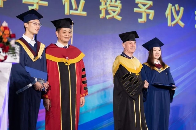 中国科学院院士、广东以色列理工学院校长龚新高(左二)在学校学生的毕业典礼上