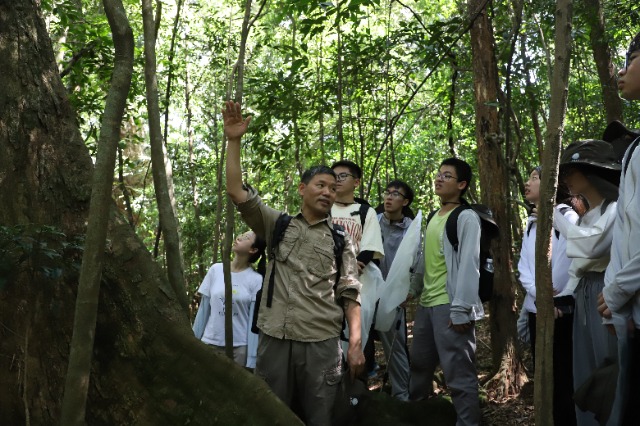 教师在热带雨林为学生授课 熊杰 摄