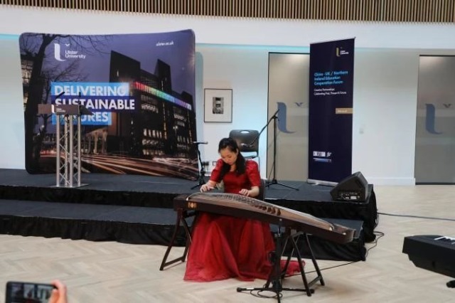 5月1日,中英/北爱教育合作论坛在贝尔法斯特市奥斯特大学举行。图为文艺表演。