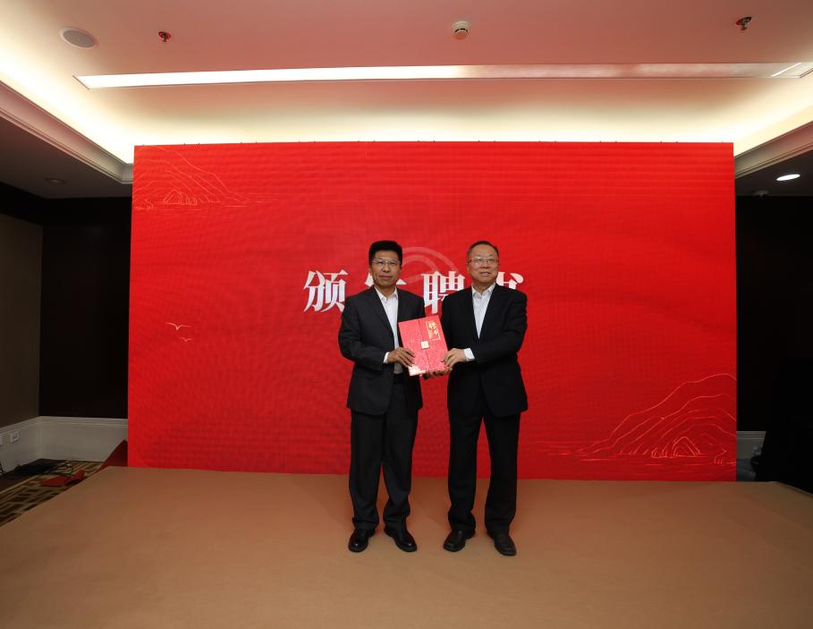 翟博常务副会长为新任理事长范绪锋颁发聘书。