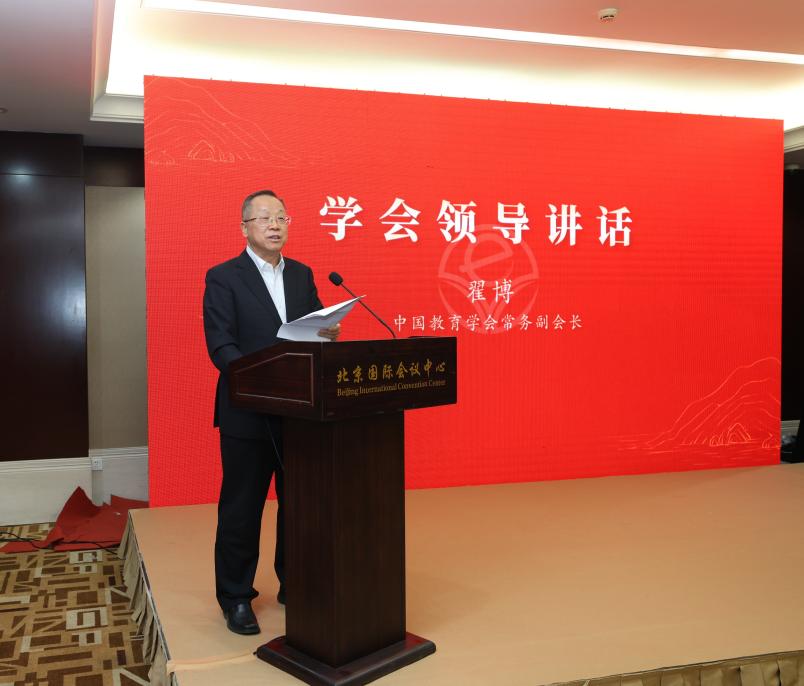 翟博常务副会长为中国教育学会教育新闻宣传分会第二届理事会理事长范绪锋颁发聘书。