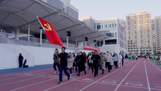 学校党总支书记刘晶将党旗、团旗、少先队旗、校旗郑重授予师生代表,并宣布活动正式开始。旗帜接力跑环节,32名校领导与党员代表率先擎起党旗完成首棒,团员代表、少先队员代表及小学部师生依次接过团旗、队旗和校旗,完成两圈接力。接力结束后,各班在班旗带领下,沿预定路线展开主题长跑。