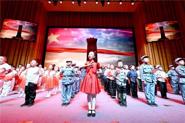 “我的家在东北松花江上……”小学部孩子们演绎的情景剧《松花江上》,以王二小、小萝卜头等英雄故事为脉络,让抗战历史与家国情怀在稚嫩歌声中交融;初中部《转身向光》则聚焦一名“问题学生”的蜕变,通过人文素养课程的引导,这名学生从迟到懈怠到自律担当,映射出教育对灵魂的唤醒;高中部大合唱《舟中晓望》更令人耳目一新——孟浩然的诗作与现代音乐碰撞,用和声“绘”出云海初阳,让古文在青春旋律中焕发新生。