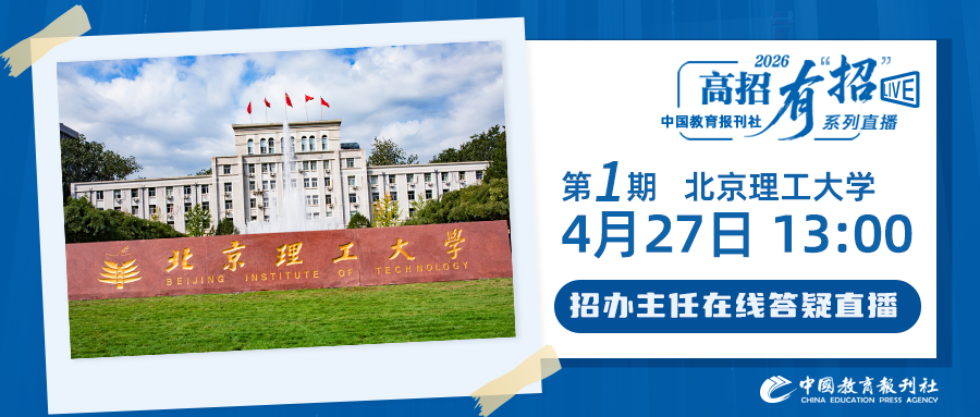 4月27日,中国教育报刊社高招有“招”第一站北京理工大学专场直播开启,北京理工大学招生办公室副主任袁丹做客直播间,为考生和家长深度解析2026年北理工高招新政策、在线解答报考困惑,为考生们的梦想保驾护航。