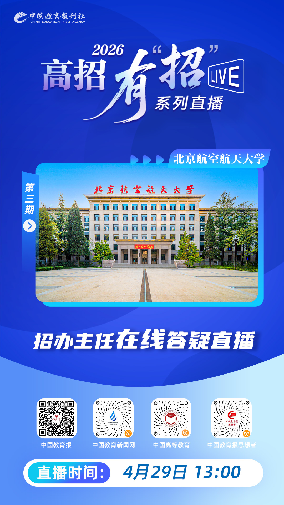 关注中国教育报刊社高招有“招”直播,