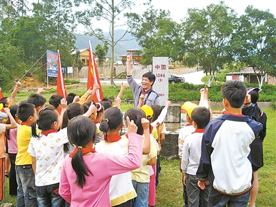 “必须让孩子们从爱碑、护碑做起,填补国防观念空白。”2001年,黄永腾为当地的孩子们设计了“与边防军叔叔护界碑”“界碑天天见”等五项活动。他给孩子们讲解界碑知识,带孩子们擦洗界碑,亲自谱写好听好唱的护碑歌……