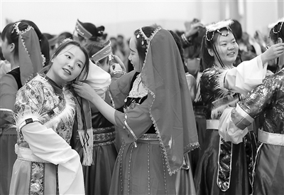 近年来,陇南师范高等专科学校学前教育学院秉持“理论与实践结合、保育与教育融合、基本素养与专业能力整合”的全程实践、全人教育人才培养模式,以全面提高学生的专业知识技能和综合职业素质为宗旨,逐步构建起“职前职后贯通、研训教一体、院地园协同”的人才培养体系,培养了大批高素质学前教育专业人才。图为舞蹈课前,学生在精心做准备。