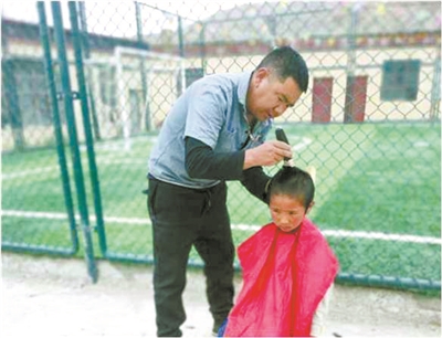 才旦多吉每两周给学生洗一次澡,每个月给他们理一次发。他自己买了理发工具,研究怎样剪出孩子们喜欢的发型,一开始理出的头发总是不整齐,想给学生做个洋气的发型,也总是做得奇形怪状。后来理发的次数多了,水平就提升了。才旦多吉笑称自己是“乡村版的托尼老师”。